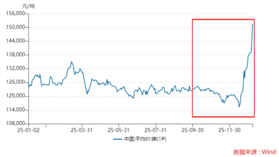 数据显示,碳酸锂价格在2025年底达11.86万元/吨,较年初的7.52万元/吨上涨了57.71%。前三个季度震荡持平,涨幅主要集中在第四季度,单季涨幅超过60%。