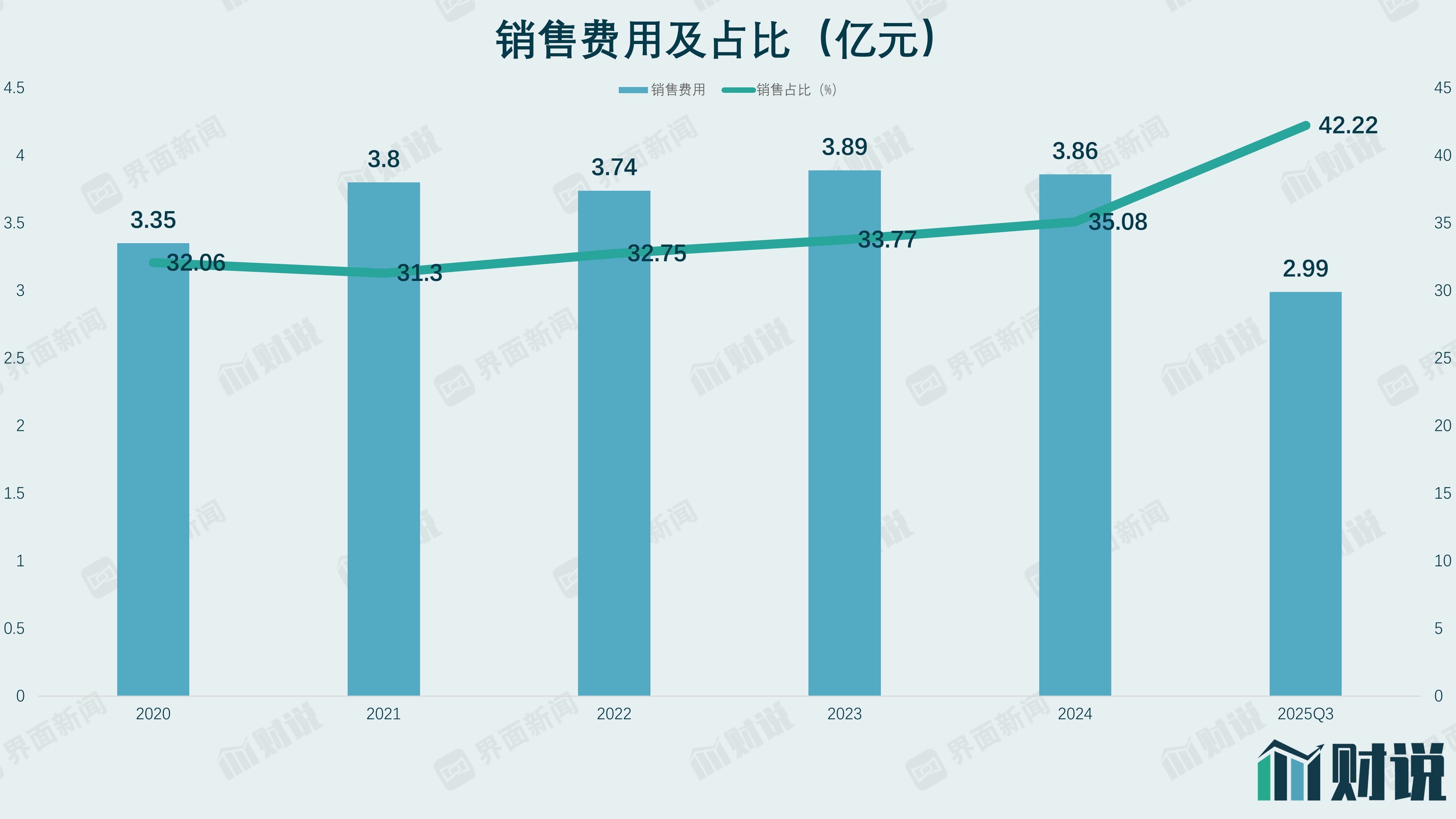 首先显现的是业绩下滑与费用高企形成的“剪刀差”。 财务数据显示,2024年公司营收同比下滑4.57%至10.99亿元,归母净利润同步下滑4.84%。进入2025年,颓势加剧,前三季度净利润同比大幅下滑34.99%。与业绩萎缩形成尖锐对比的,是销售费用的飙升。2024年,销售费用达到3.86亿元,占总收入的比为35.08%,较前一年提升1.31个百分点。2025年前三季度,销售费用率已攀升至42.22%。