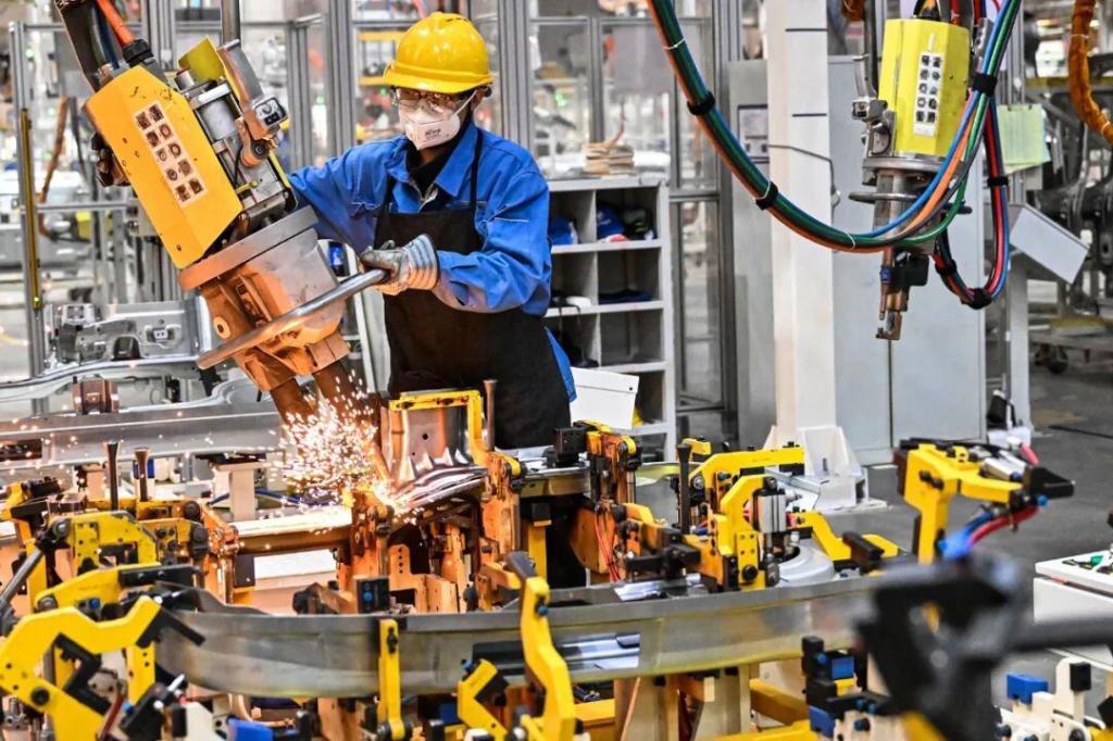 一家新能源汽车企业,工人在新能源轻卡车生产线上 / 新华社发(李恒摄)