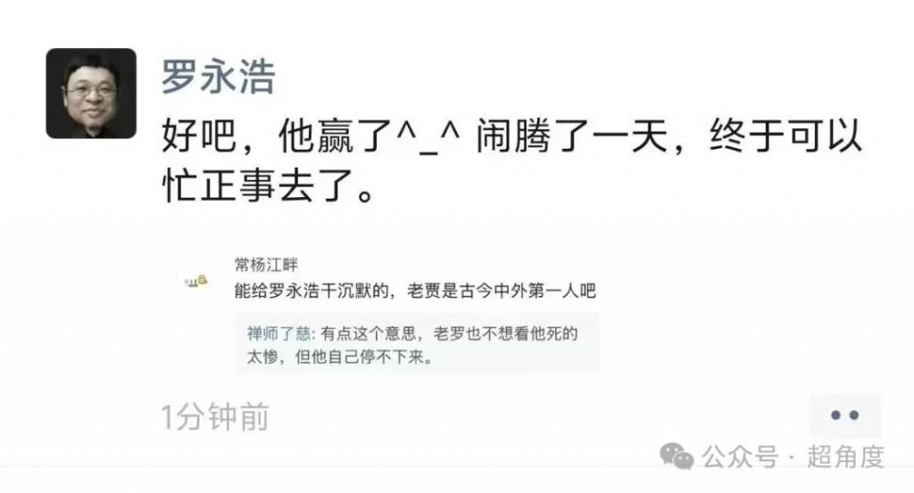 贾国龙罗永浩被禁言,罗永浩发声:好吧,他赢了