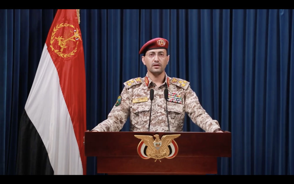 这张2024年6月22日的视频截图显示,也门胡塞武装发言人叶海亚·萨雷亚在萨那发表声明。新华社发