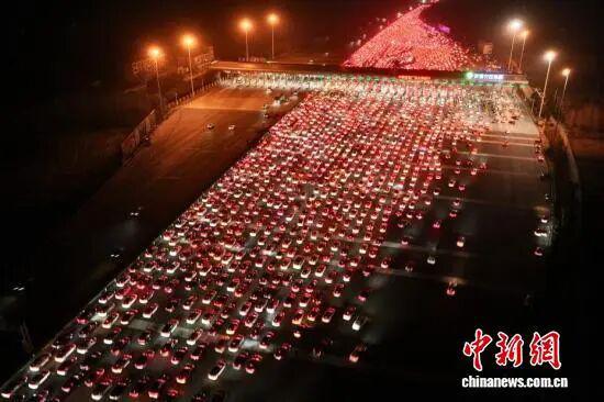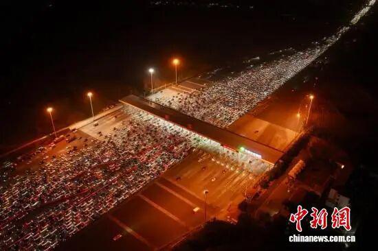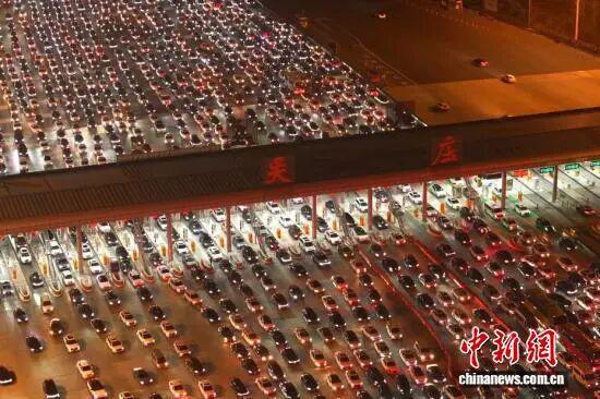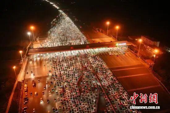 航拍中国最大高速收费站春节返程高峰,36个车道被挤满