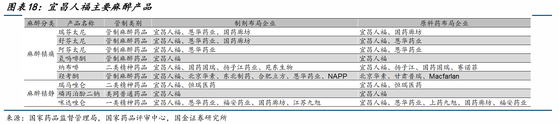 据本次预案,人福医药核心品种注射用盐酸瑞芬太尼、枸橼酸舒芬太尼注射液市占率高达90%,盐酸氢吗啡酮注射液/片剂为独家品种。这三者及盐酸阿芬太尼注射液均属于麻醉药品和第一类精神药品,不被纳入集采范围,从而形成人福医药业绩护城河。