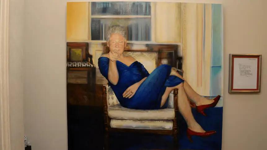 最重要的是 …… 爱泼斯坦的纽约豪宅里,曾挂着一幅油画:克林顿身穿蓝色连衣裙、脚踩红色高跟鞋,坐在椭圆形办公室里 ……