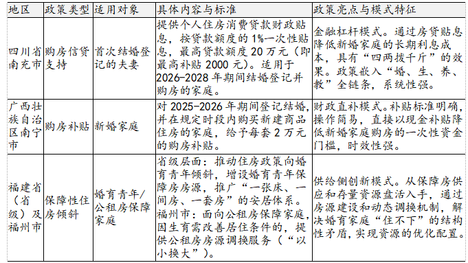 界面新闻通过梳理现有住房支持政策来看,各地针对多孩家庭的倾斜较为明显,而面向初婚初育家庭的住房支持措施相对较少。不过已有部分地区率先作出探索,如四川南充、广西南宁、福建福州等地,已从住房角度出台相关政策支持初婚初育家庭。