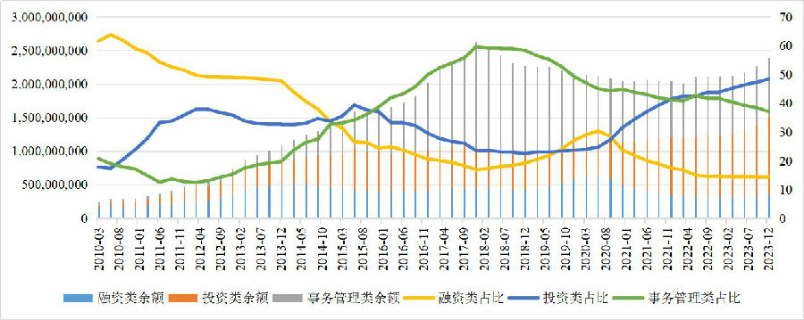 截至2023年末,融资类信托规模3.48万亿元,较2019年末压降已超2万亿元。