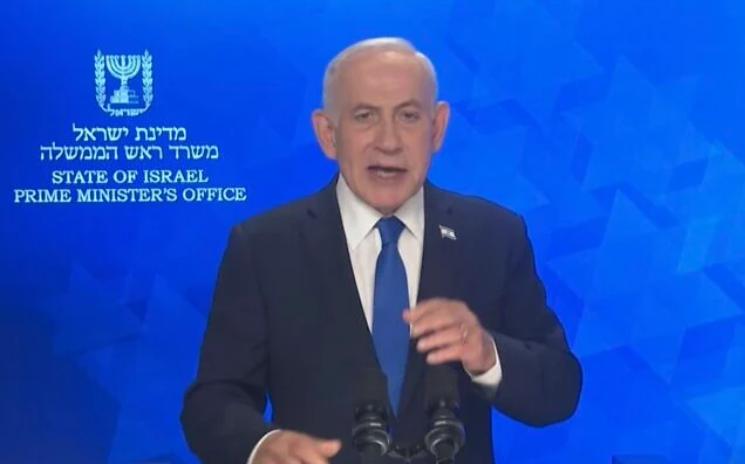 当地时间 3 月 7 日晚,以色列总理内塔尼亚胡发表视频讲话。