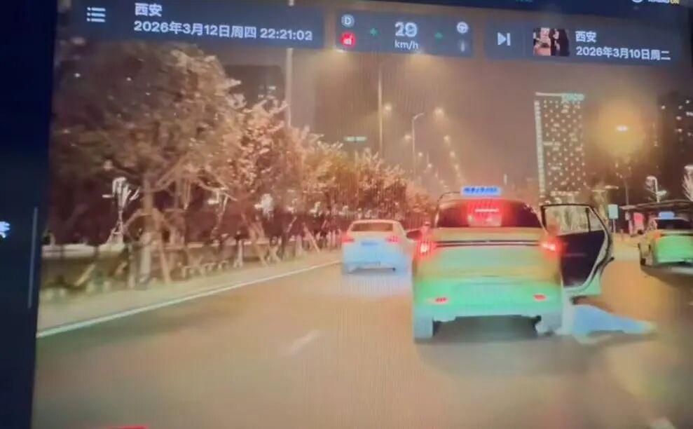 3 月 12 日晚,有网友在社交平台发布一段车载监控视频称,当晚 10 时 20 分许,陕西西安一出租车正行驶时,有人疑似从车上跳了下来。
