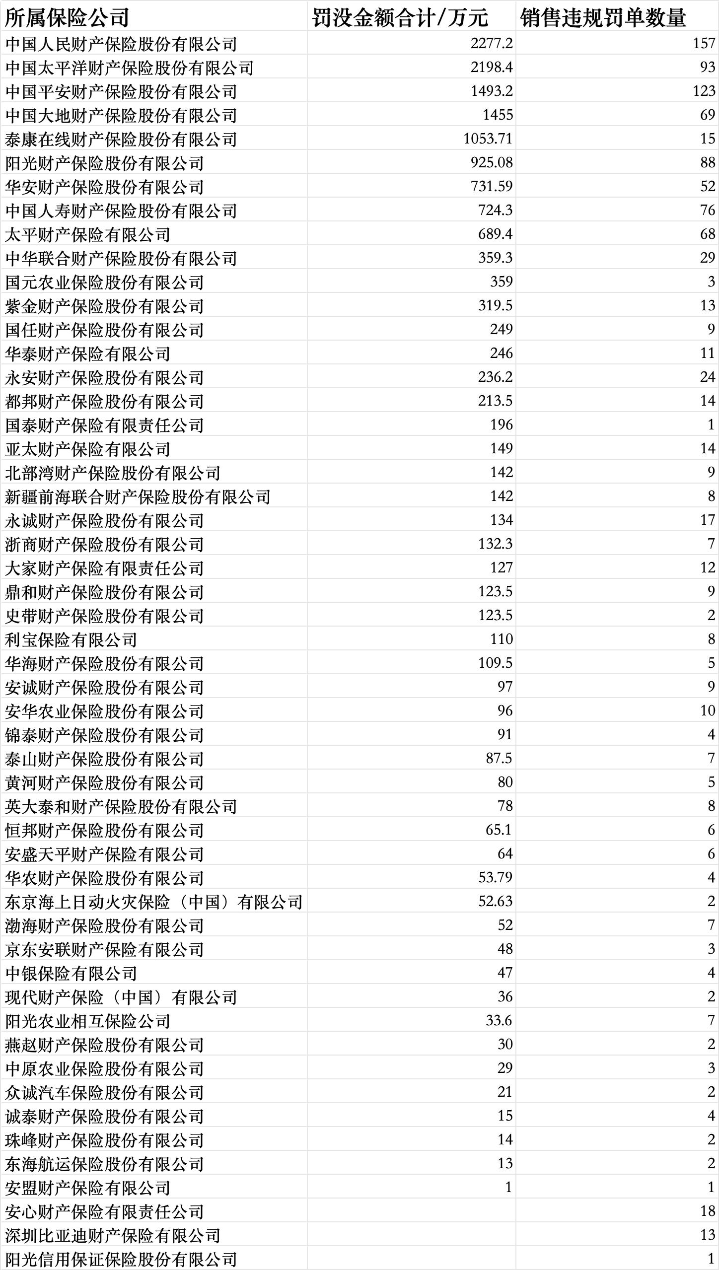 界面新闻记者根据因销售行为违规领罚单的当事人(个人、总公司及分支机构)所属保险公司(下同)统计发现,财险公司中,2025年,中国人民财产保险股份有限公司、中国太平洋财产保险股份有限公司被罚没金额最多,均超过2000万元,中国平安财产保险股份有限公司、中国大地财产保险股份有限公司、泰康在线财产保险股份有限公司也均超过千万元。