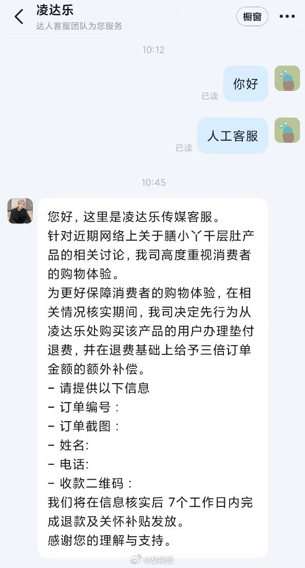 在相关核实期间,还决定先为消费者垫付退费加三倍补偿,7 个工作日内到账。