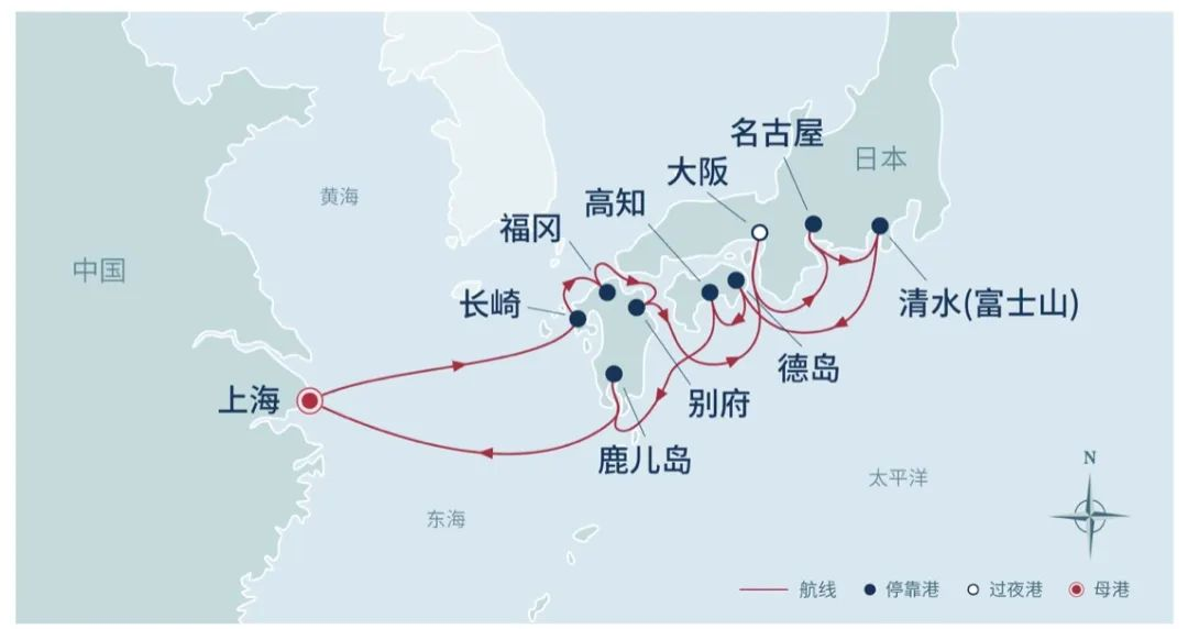投运前三年,招商伊敦号的航线始终围绕中国沿海展开。直至2024年上半年,招商伊敦号开始正式调转方向,以上海为母港推出“日韩15天深度游”产品,并在济州岛、长崎、鹿儿岛、别府、名古屋、清水等地经停,人均价格约在4万人民币左右。
