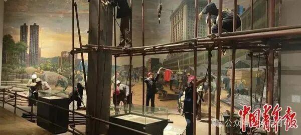 工作人员甚至直接在馆内建了个 " 工地 "。