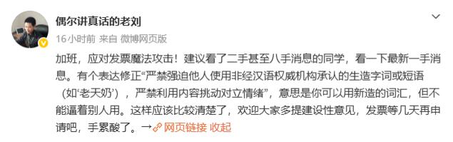 面对用户的集中开票行为,晋江原创网络科技有限公司副总裁刘旭东通过个人微博账号 @偶尔讲真话的老刘 公开发文,将用户的开发票行为称为 " 魔法攻击 ",并抱怨员工 " 手累酸了 ",呼吁用户 " 等几天再申请 "。这番言论非但未能安抚情绪,反而引发了更强烈的反弹。