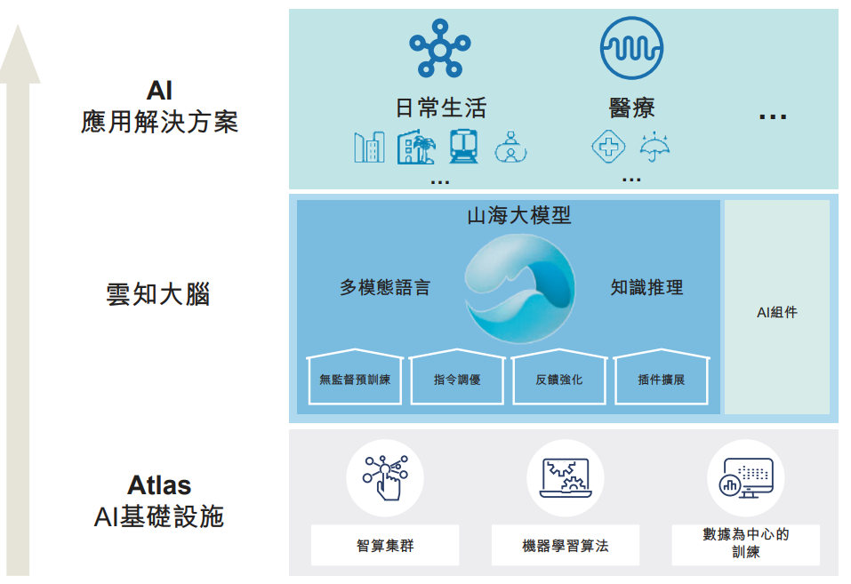 山海大模型是云知大脑的核心,决定了系统的认知及业务处理能力。该大模型可大幅减少在开发新的解决方案时模型微调所需的数据量和人力投入,使AI产品及解决方案显著提高效率,摆脱传统的“作坊式”手动打造AI终端产品。