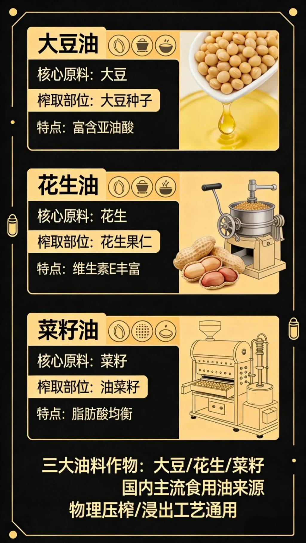 那么,廉价的油从哪里来的?大豆、花生和菜籽,是食用油榨取的三大来源。