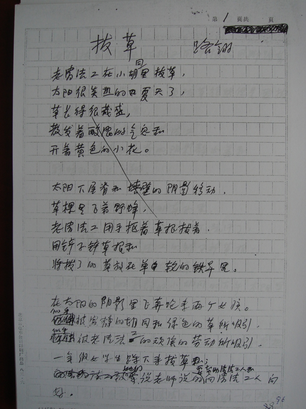 路翎晚年诗作《拔草》手稿