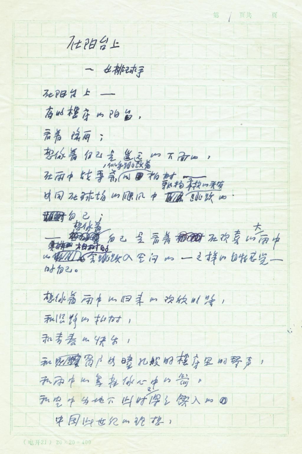 路翎晚年诗作《在阳台上》手稿