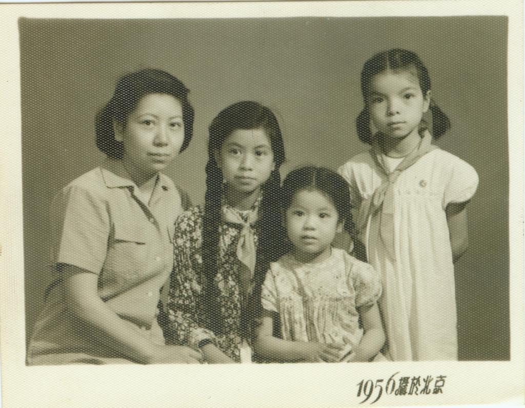 1956年,余明英与长女徐绍羽、次女徐朗、幼女徐玫摄于北京