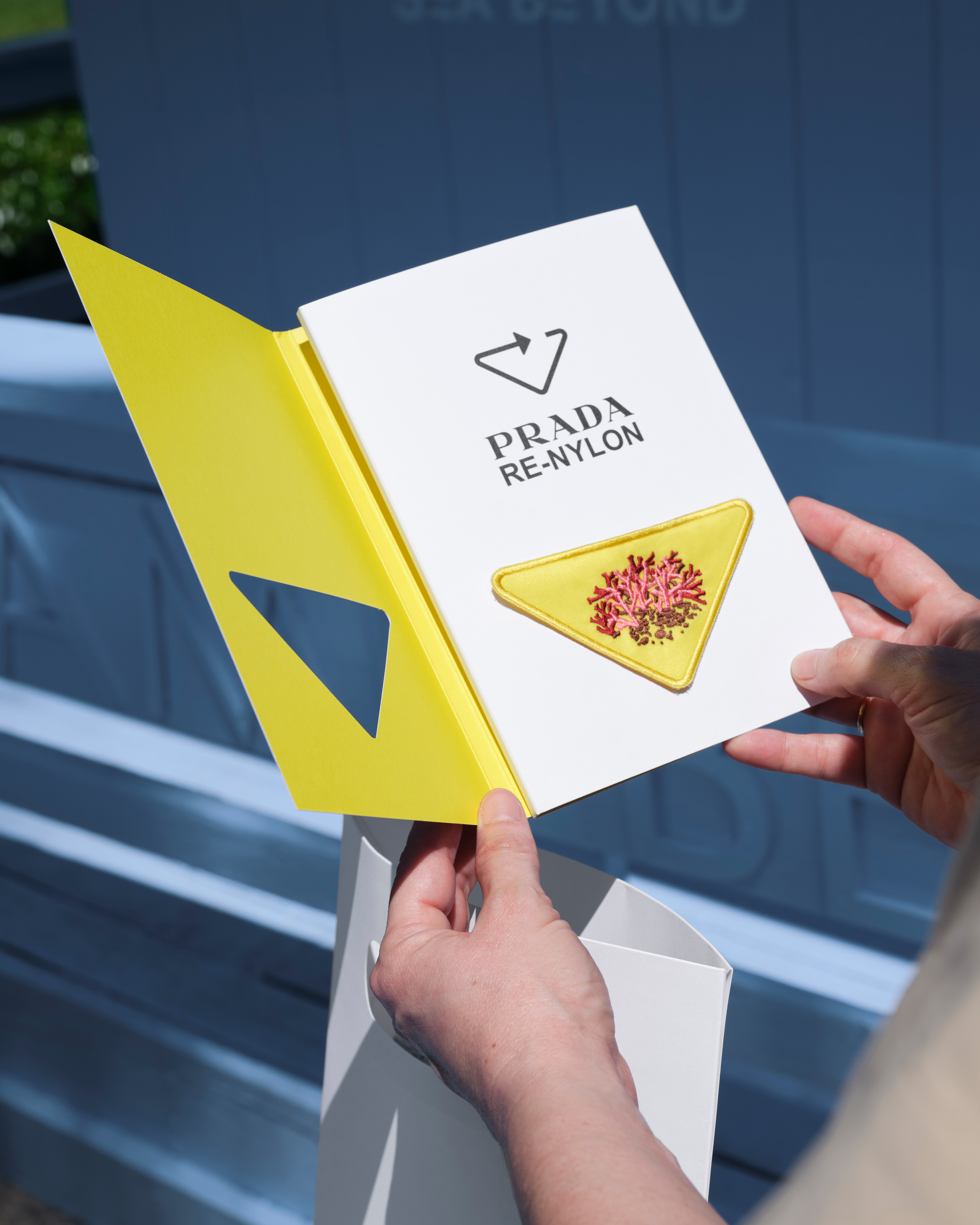 公众在此领取限定赠礼,内含专为SEA BEYOND特别制作的《国家地理》意大利版特刊。每份赠礼均附赠一枚专属刺绣布面徽章,其设计呼应经典Prada三角形标识,共推出七款创意设计,既呼应世界七大洲,亦喻指 “七大洋”。