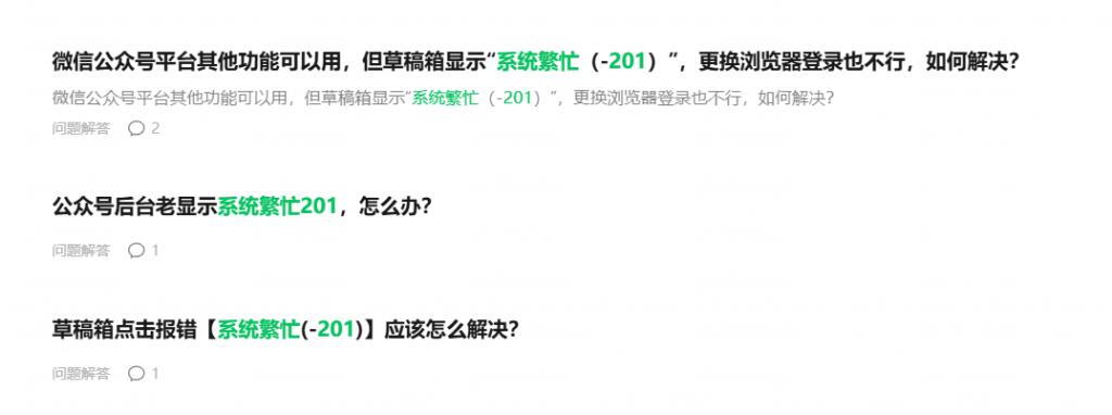在微信开放社区,已有多位用户反映相同问题。有人发帖询问:" 公众号后台老显示系统繁忙 201,怎么办?" 也有用户具体描述:" 草稿箱点击报错【系统繁忙 ( -201 ) 】应该怎么解决?"。一位网友补充道:" 微信公众号平台其他功能都正常,唯独草稿箱进不去,换了浏览器登录也没用。"