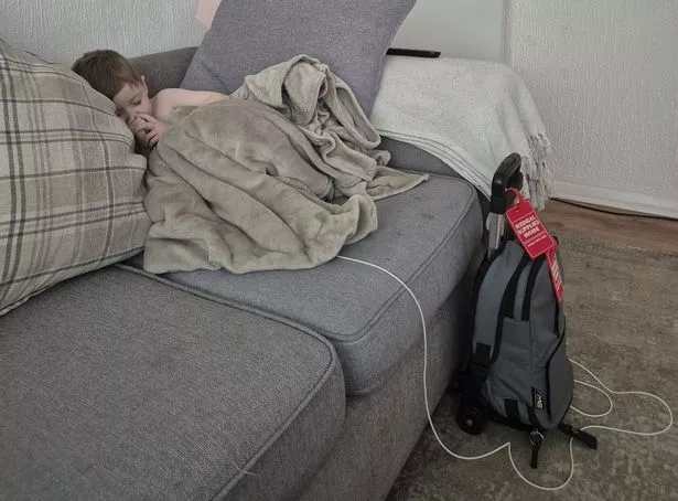 如果没有全肠外营养(TPN)滴注,亨利就无法生存。TPN通过中心静脉输送到他的心脏,他无法从食物中吸收必需的营养和脂肪。这个一升大小的袋子装在亨利随身携带的小手提箱里。他的妈妈,32岁的卡莉,住在肯特郡的梅德斯通,她说她的儿子“一切都很从容”,但需要帮助才能享受他的激情。