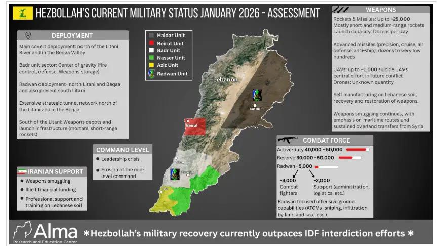 但以色列阿尔玛军事观察网站今年 1 月发布一份报告认为,真主党武装实力仍不能小看:
