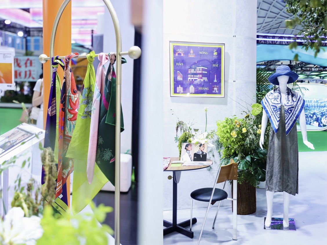 作为上海馆“上海定制”板块的参展品牌,帕霓霓PANINI此次重点展示的是“侬好,上海”系列围巾。该系列以上海极具代表性的城市建筑为核心,将豫园湖心亭、城隍庙、静安寺等地标与时代变迁织进同一幅画面。