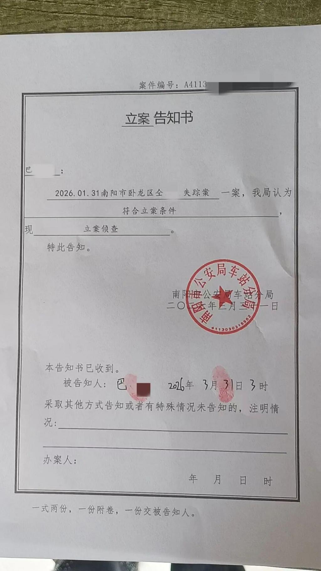 2026 年 2 月 2 日深夜,小仝的母亲到南阳市公安局车站分局报警,称女儿小仝离家出走多日联系不上,求助公安机关协助寻找。