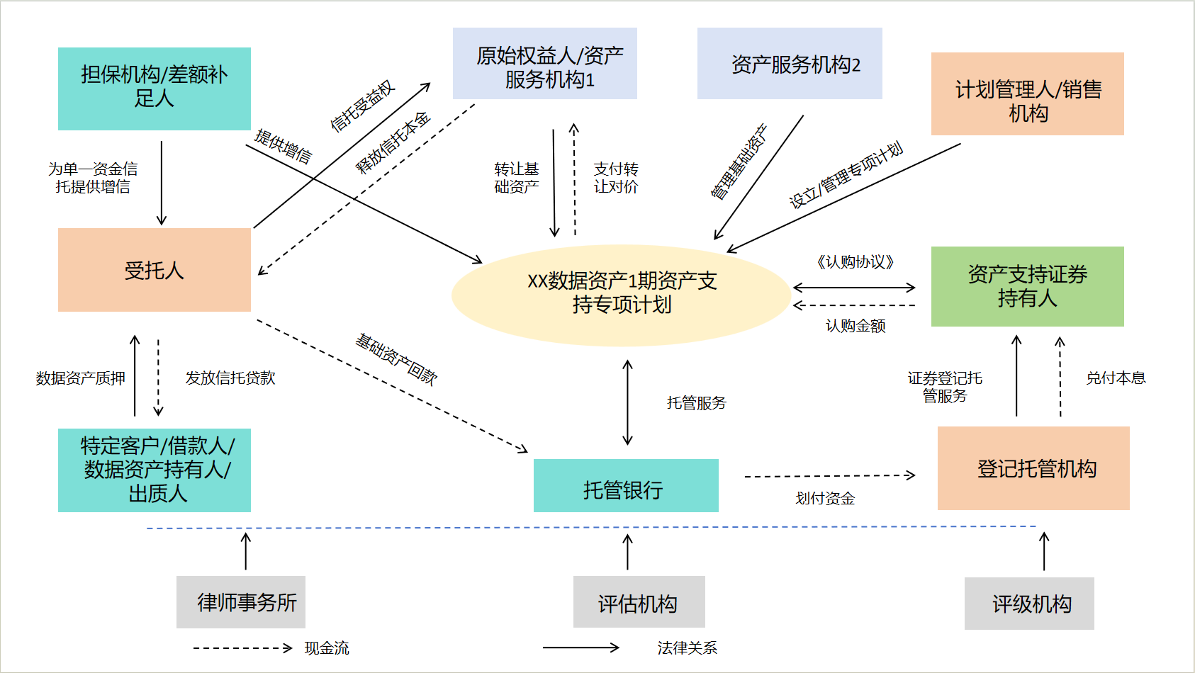 作为首单纯数据资产的亲历者,赵传启向界面新闻解释到,这一项目在业内首创双SPV结构:先把完成全链路合规、确权、入表、估值的纯数据资产作为信托财产设立财产权信托,再以信托受益权为基础资产发行ABS。“数据第一次摆脱了对债权、对主体信用的依附,直接成为了证券化的底层核心资产。”