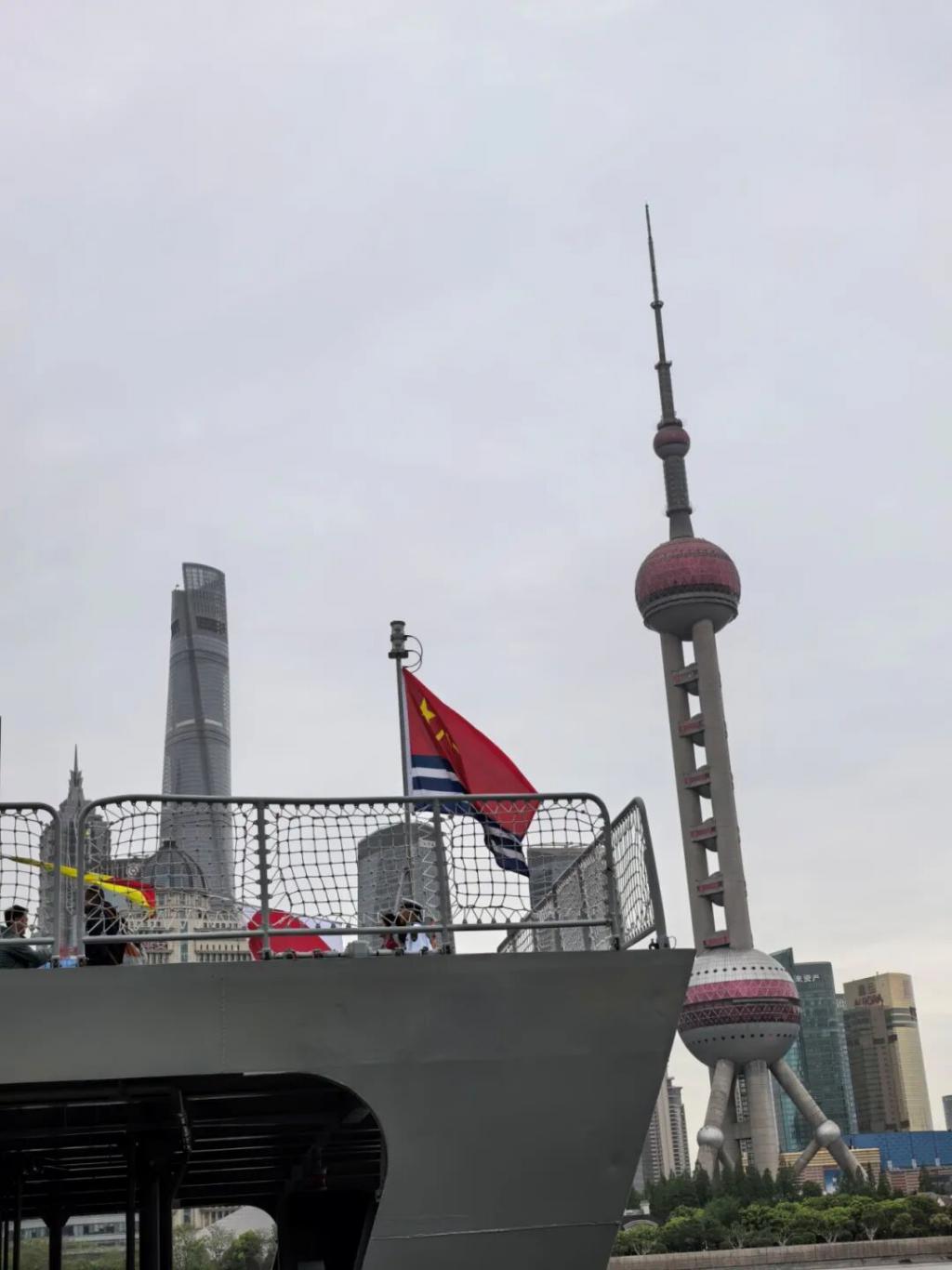 在上海虹口北外滩与陆家嘴 " 三件套 " 同框的阜阳舰