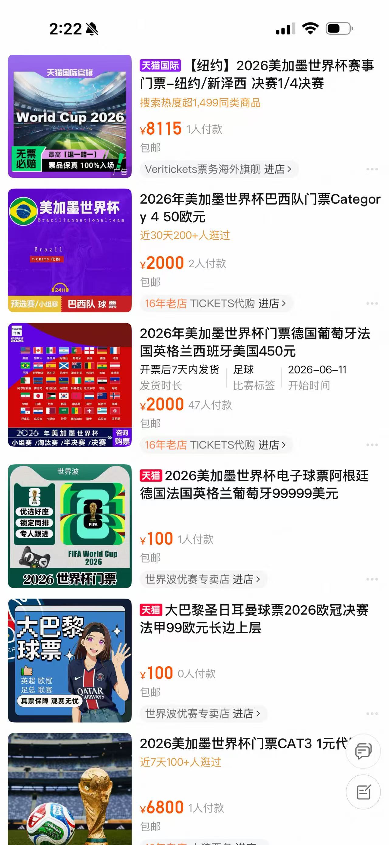 决赛门票转手价格近230万美元,2026世界杯催热票务生意