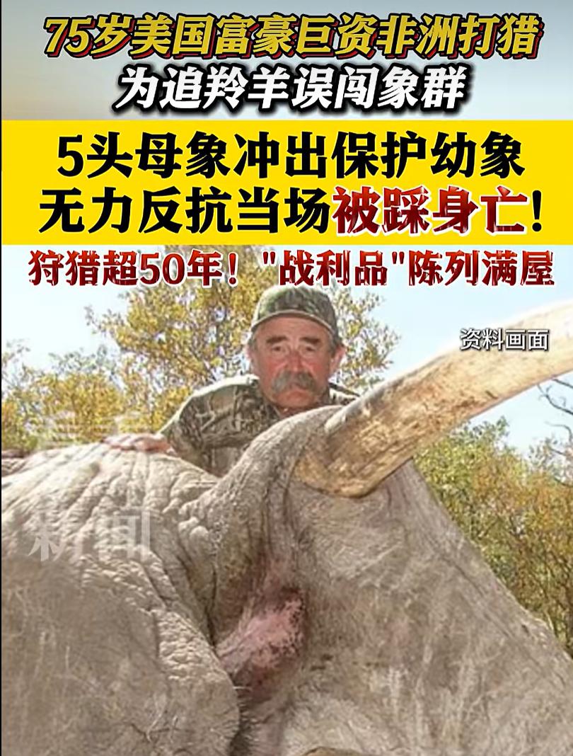 75岁美国知名富豪、葡萄酒大亨斥巨资在非洲打猎,被5头大象踩死