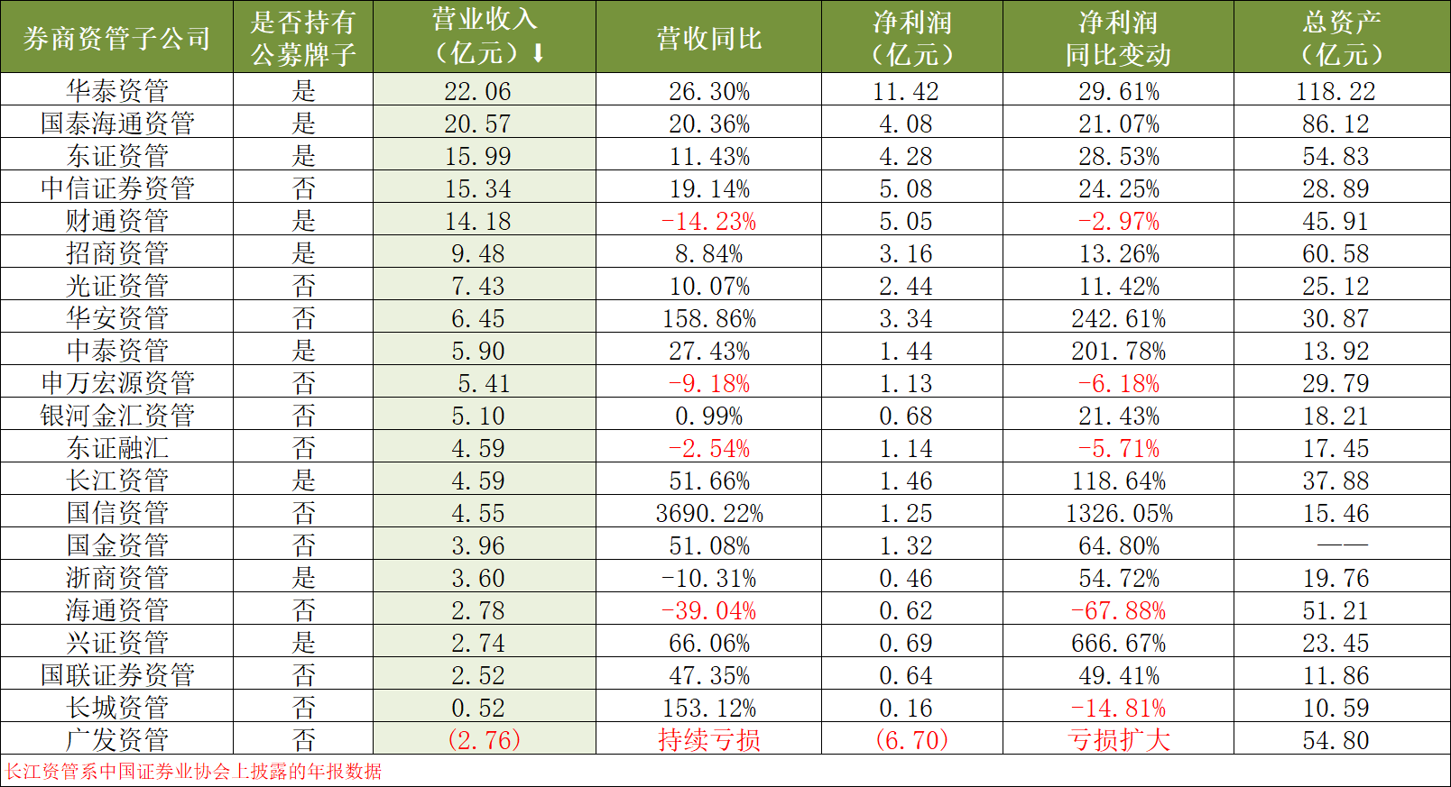 截至目前,券商资管子层面,国泰海通资管尚未完成与海通资管的吸收合并工作。若将海通资管全年盈利(0.62亿元)与国泰海通资管合并计算,国泰海通资管也将超越东证资管,成为业内第三家最赚钱的券商资管子公司。