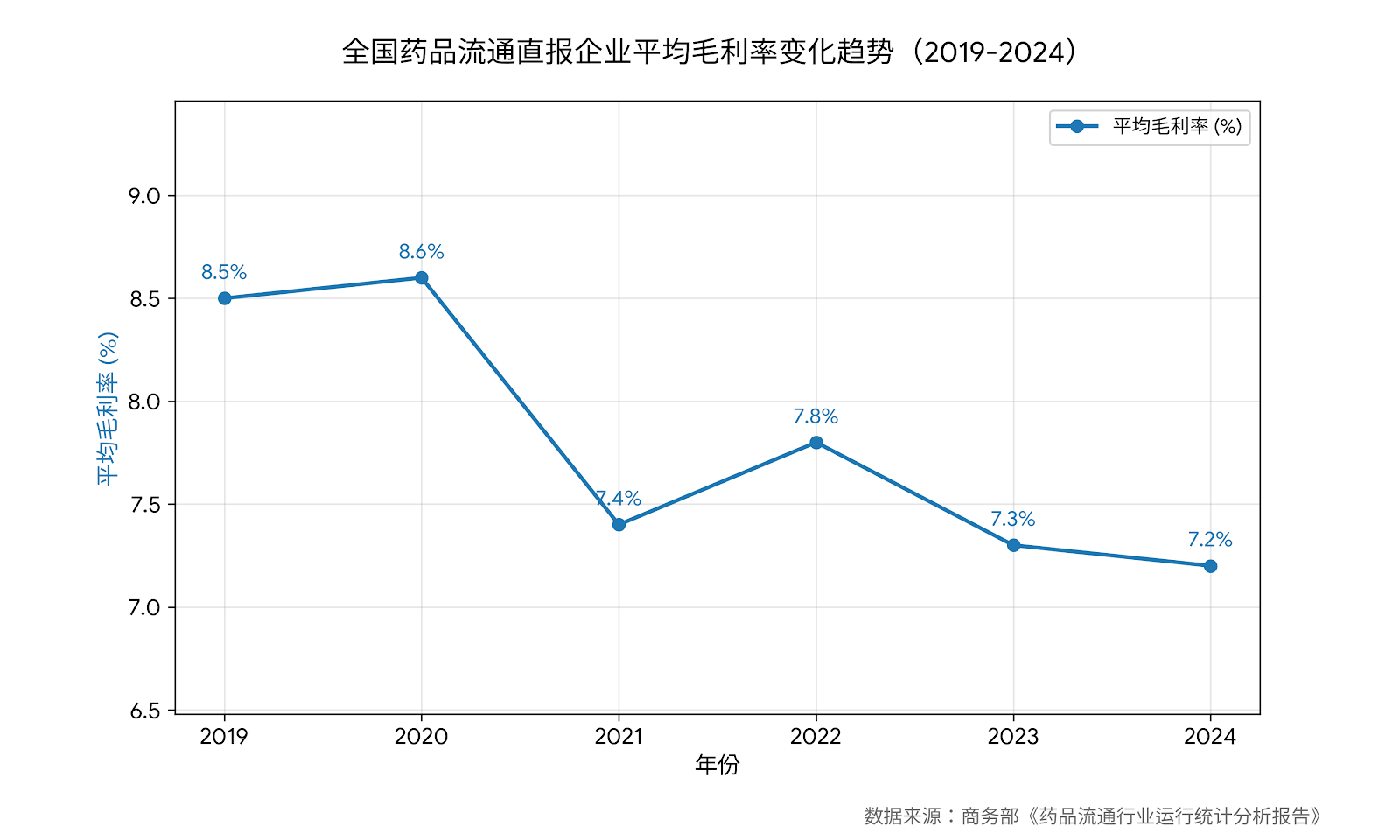 在行业承压之外,公司业务结构本身也限制了利润修复空间。事实上,流通业务本就是薄利生意。据商务部历年《药品流通行业运行统计分析报告》,近年来药品流通业直报企业平均毛利率整体下行。