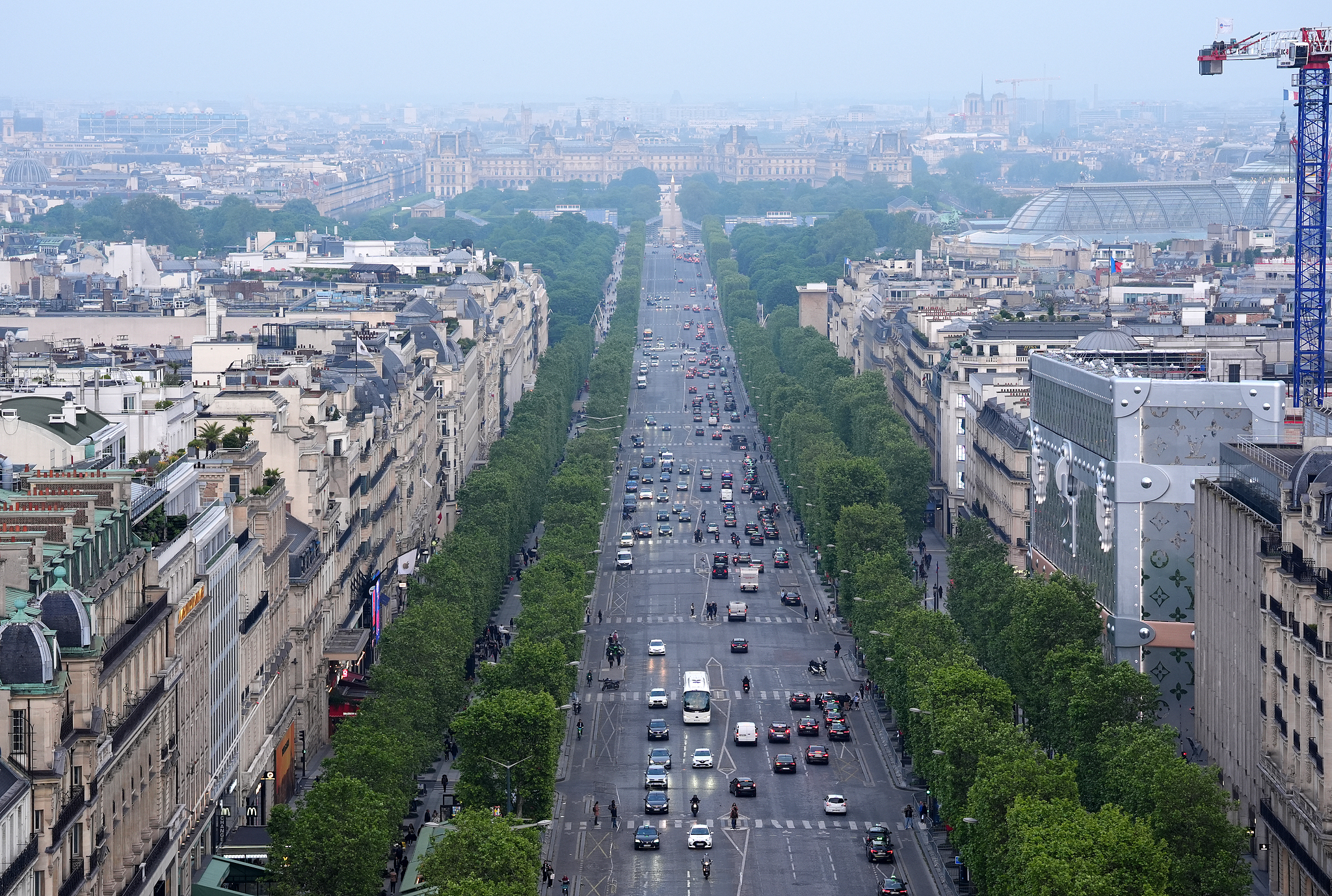 李迪华也对巴黎的交通理念印象深刻,他曾拍下一张香榭丽舍大道的照片,人行横道密集遍布整条大道。“我时常开玩笑,在巴黎的大街上,你远远看到马路对面的橱窗里有一件你喜欢的衣服,那么你即刻就可以穿过人行道去试穿它。”