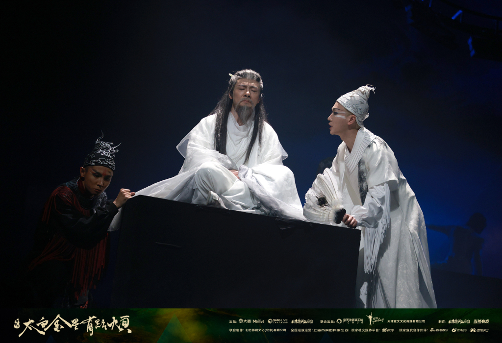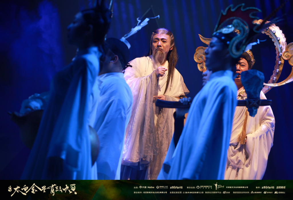 刘天池:没错,我们遵循着大道至简的理念,这次在道具设计、灯光布景和细节呈现上,都选择了相对简洁且抽象化的方式。这不仅可以让中国古典文化与现代化元素充分交互,同时也能让观众在观演过程中,和故事中的人物、情节实现更好的连接。比如说舞台上出现的“山”,映射了同天庭和灵山上这些神仙的“跟脚”(背景或出身),寓意既是表现某个人的背后其实还有人,也是展现每个人都是“身在山中”,我们没有办法看到全貌。