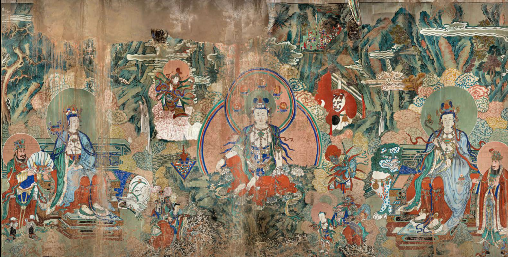 安然 :在中国,无论是艺术、美术还是壁画,都有一个共同的特点,那就是它们都是时间累积的结果,尤其是壁画。以敦煌壁画为例,张大千曾经因为试图找到唐代的壁画而揭掉了表层属于五代时期的壁画,这种做法虽然让他找到了唐代的壁画,但却破坏了同样珍贵的五代壁画。实际上,壁画往往是层层叠加绘制的,比如应县木塔就非常典型,可以同时看到辽代、金代不同历史时期的壁画在同一面墙上共存。应县木塔南门进入后,下层是两个金刚,上层则是两个佛弟子——一个是阿难,另一个是迦叶,分列两边。然而,这些壁画的年代并不相同,上面的佛弟子形象更早,是辽时期的作品,而下面的金刚则是金时期的作品,覆盖在前者之上。这意味着下面可能还有更多的辽代壁画,但揭开表层就会破坏现存的壁画,这使得每一层都变得尤为珍贵。