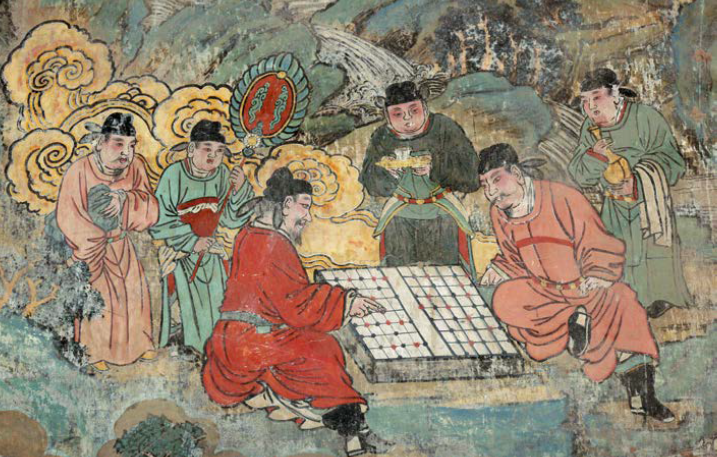 此外,水神庙中还有描绘两人下棋的“对弈图”和宫女对着镜子梳妆的“梳妆图”。这些图像似乎与庙宇的主题并无直接关联,但根据北京大学李淞教授的研究,这些图像可能通过谐音梗的方式隐喻祈福或求雨等寓意。例如,“镜”与“求”的谐音关系,暗示着敬求之意;而“棋”与“祈”的谐音,则象征着祈祷。