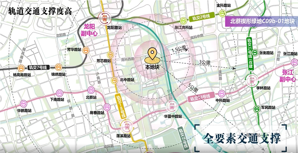 该地块位于北蔡板块东北角,邻近花木和张江板块,未来可承接两大板块外溢的客户群体。