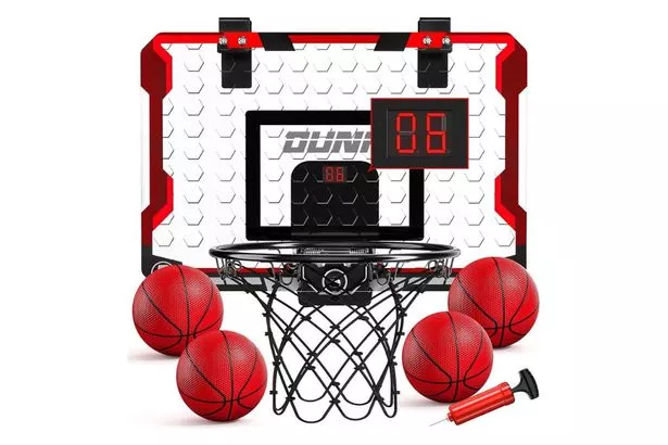 体育活动对让孩子远离屏幕、让他们动起来很有好处,但下雨天通常意味着被困在室内。然而,这个室内篮筐可以安装在大多数标准的门上,并在后面配备了一个软垫板和一个电子记分器,这使得它更容易同时进行比赛和比赛。