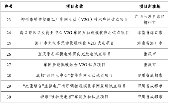 一、经专家评审,列入首批车网互动规模化应用试点范围的为上海市等9个城市以及“北京市基于新型储能的V2G车网互动协同调控试点项目”等30个项目(名单附后)。