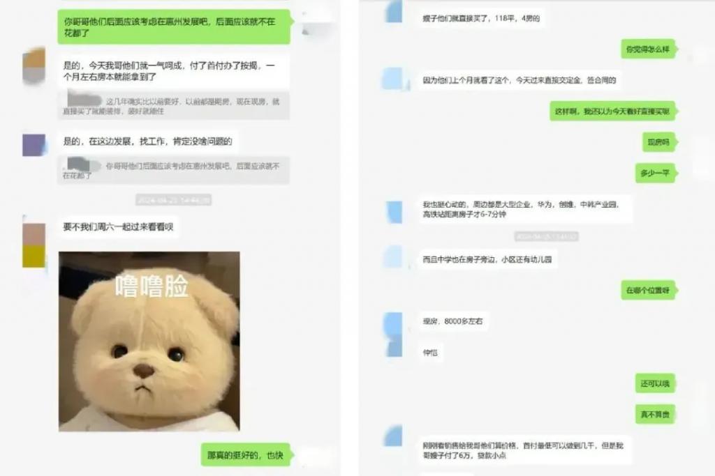 " 每个谈婚论嫁的都绕不开(房子)",张益民对此没有异议。但以两人的收入,深圳的房子稍显吃力。女孩提到了惠州,非常凑巧,她说自己哥嫂近期看中了惠州一个楼盘。正是在他们交往期间,她陪哥嫂去买房,一边拍下视频一边给工作中的张益民介绍,"(楼盘)旁边是政府单位,周边都是高新企业,政府投资 3000 多个亿打造;小区自带幼儿园中小学,入住率高 ……" 不难看出,女友对这个楼盘很感兴趣。