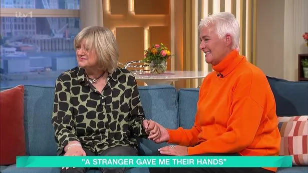 嘉宾科琳娜·赫顿和黛博拉·高斯林坐在沙发上分享了她们非凡的故事。不幸的是,科琳患有败血症,肺炎导致她失去了双手。
