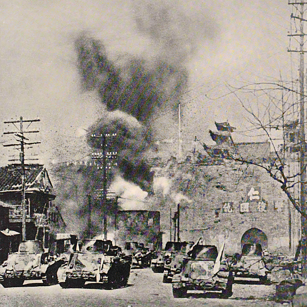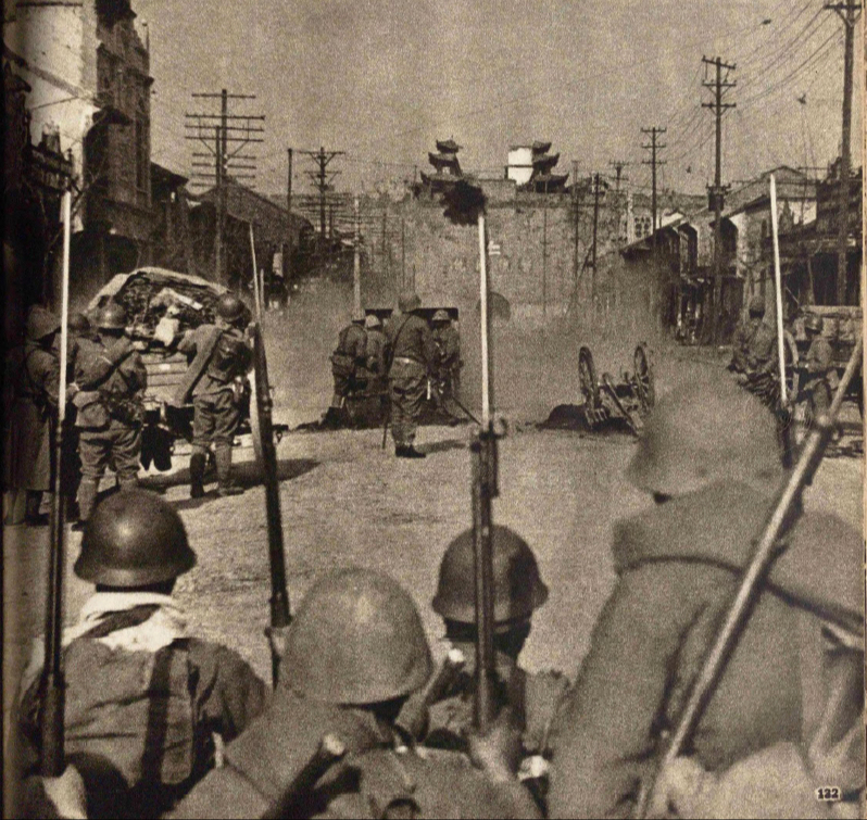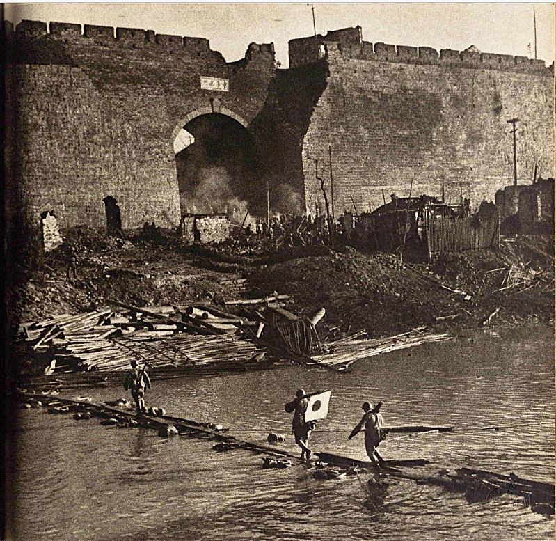 渡河入城之日军千叶部队,12月13日摄于中华西门。