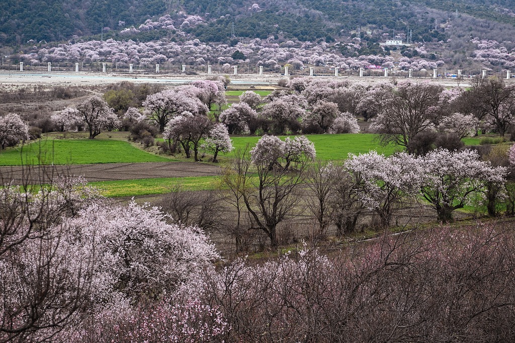 2025年4月2日,西藏自治区林芝市波密县桃花沟风景区迎来最佳观赏期,漫山遍野的桃花肆意绽放,美景如画。 中新社记者 贡嘎来松/视觉中国 图