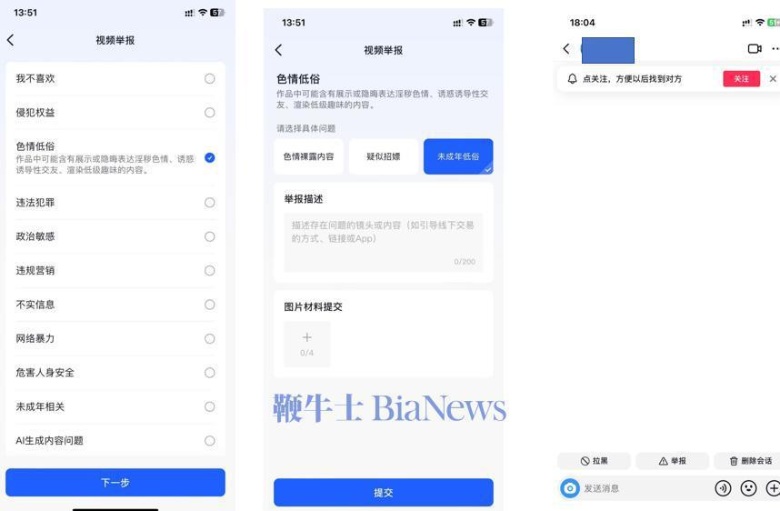 面对上述问题,多年来各大社交平台从未停止过努力的步伐。抖音不仅对视频和直播审核力度持续升级,用户可通过举报功能对视频、直播、用户进行随时举报。且平台若是监测到用户存在问题,轻则对账号降权、限流、限制部分功能使用,重则直接封号。