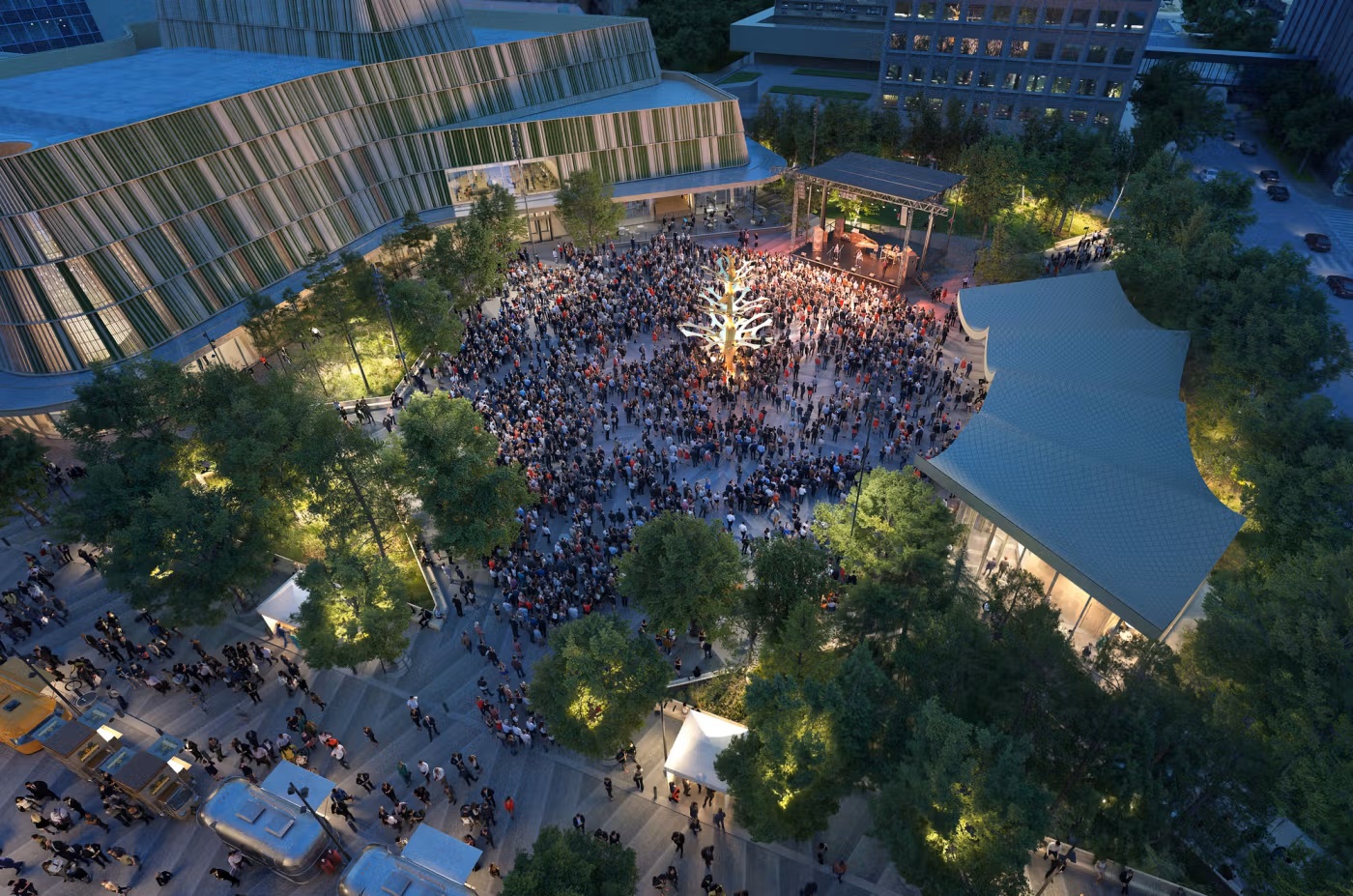 周一公布了重建项目的细节,计划于2028年完工,其中包括额外的绿地、露台和一个亭子,以支持包括多达5000人的聚会在内的全年活动。