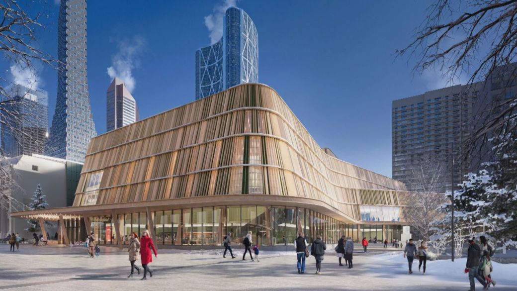 在周一上午的新闻发布会上,卡尔加里市政土地公司、卡尔加里市和艺术共享中心提供了照片和视频,展示了重新设计的艺术家效果图。