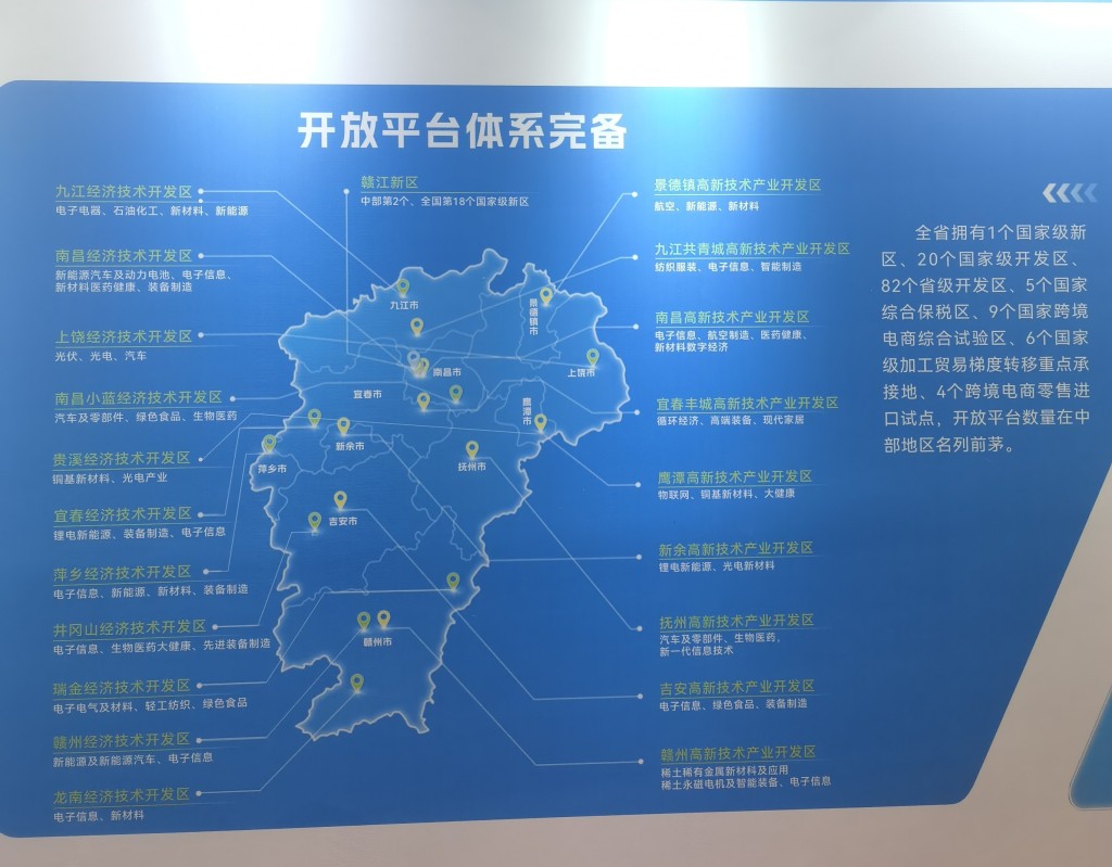 不过,有雄厚的产业基础还不够,要想吸引更多龙头企业落户,乃至形成完善的产业链,还需要高能级的开放平台和创新平台作为支撑,这就离不开江西构建的从国家级到省级的各类开发区矩阵。
