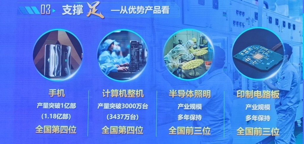 早在2022年,江西电子信息产业就率先突破万亿大关,2024年进一步逼近1.2万亿元,产业规模在全国排名第四位,稳居中部省份首位。其中,手机产量突破1亿部、计算机整机产量突破3000万台,均列全国第四位,而半导体照明和印制电路板产业规模多年保持全国前三位。